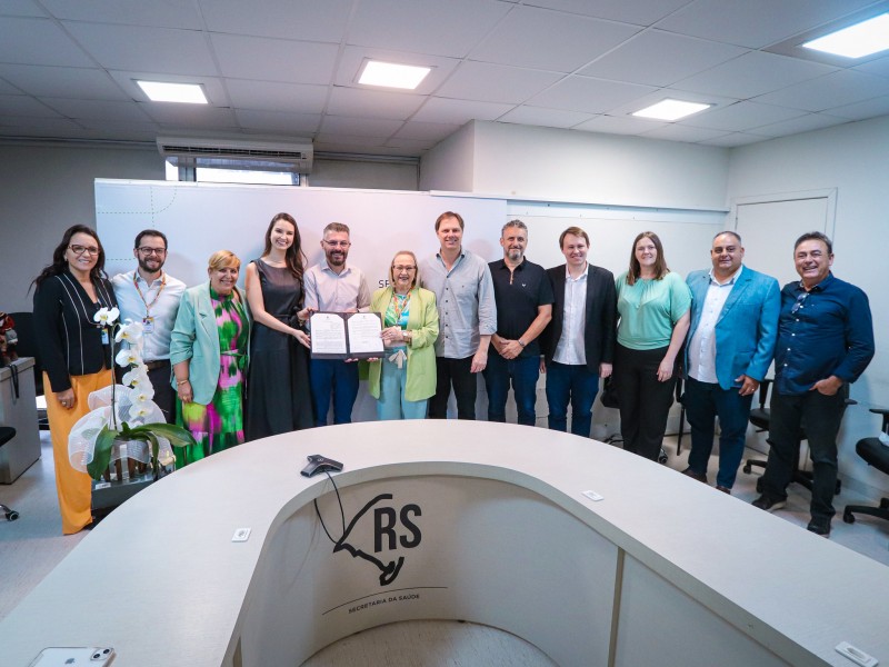 A secretária municipal de Saúde, Betina Espíndola, a presidente da Fundação de Saúde de Novo Hamburgo, Vânia Horbach, assim como o deputado estadual Issur Koch e o deputado federal Lucas Redecker acompanharam a assinatura da portaria.