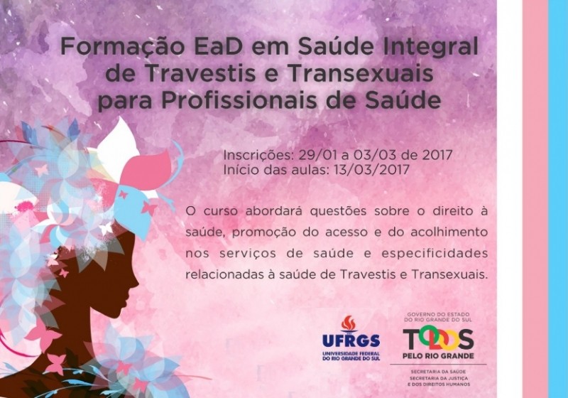 Profissionais que atuam nos serviços públicos e privados de saúde podem participar do curso de formação a distância em Saúde Integral de Travestis e Transexuais. A atividade, alusiva ao Dia Nacional da Visibilidade Trans (29 de janeiro), é promovida pela Secretaria Estadual da Saúde em parceria com a Universidade Federal do Rio Grande do Sul (UFRGS).