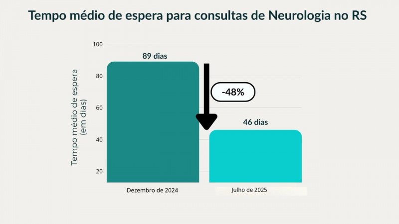 A Secretaria da Saúde (SES) vem fortalecendo o acesso a consultas e procedimentos especializados em diversas áreas pelo Sistema Único de Saúde (SUS), como é o caso da neurologia. Entre dezembro de 2024 e julho de 2025, a média do tempo de espera para consulta diminuiu de 89 para 46 dias – uma queda de 48% na espera por esse tipo de atendimento especializado no Estado.